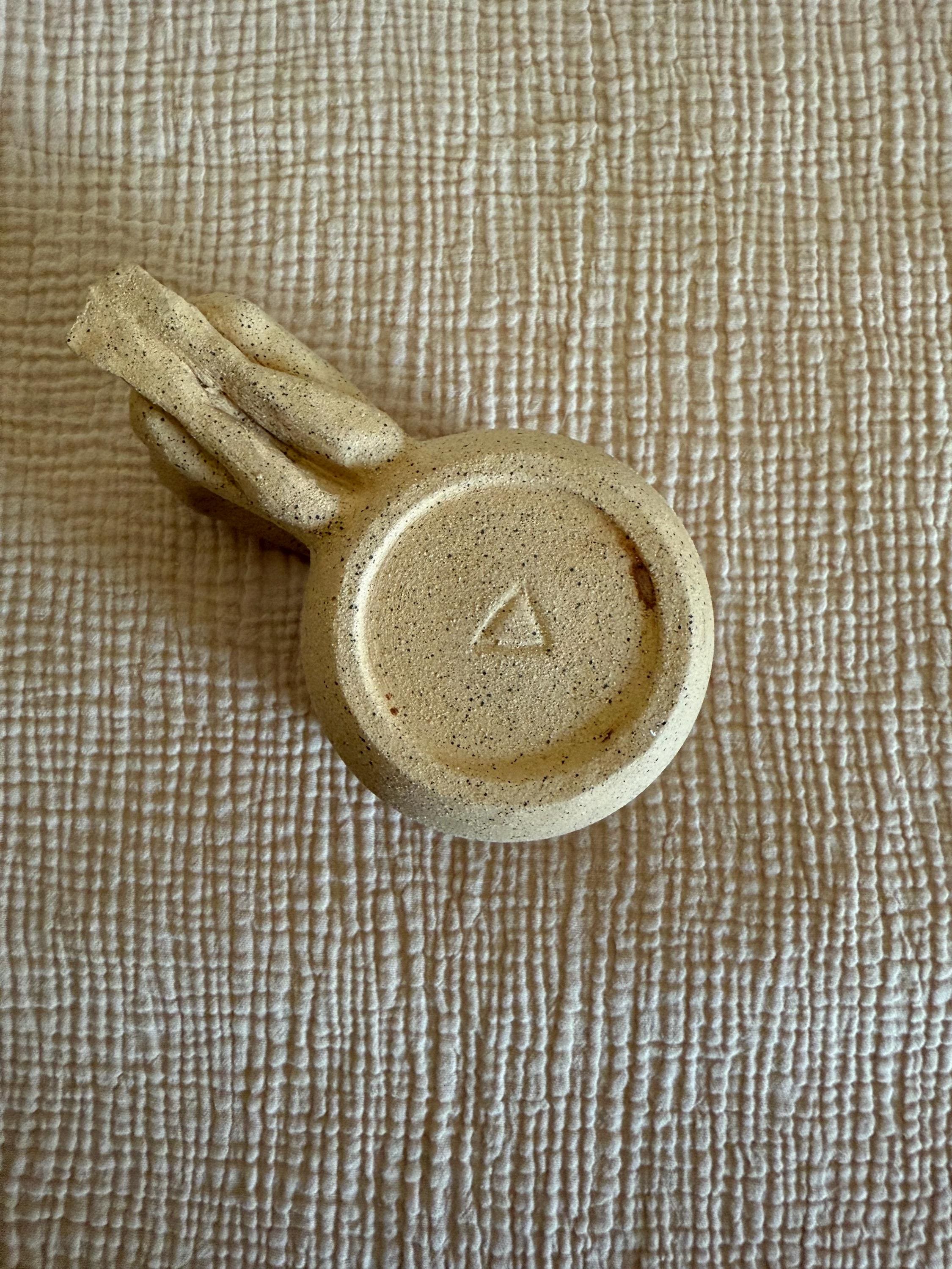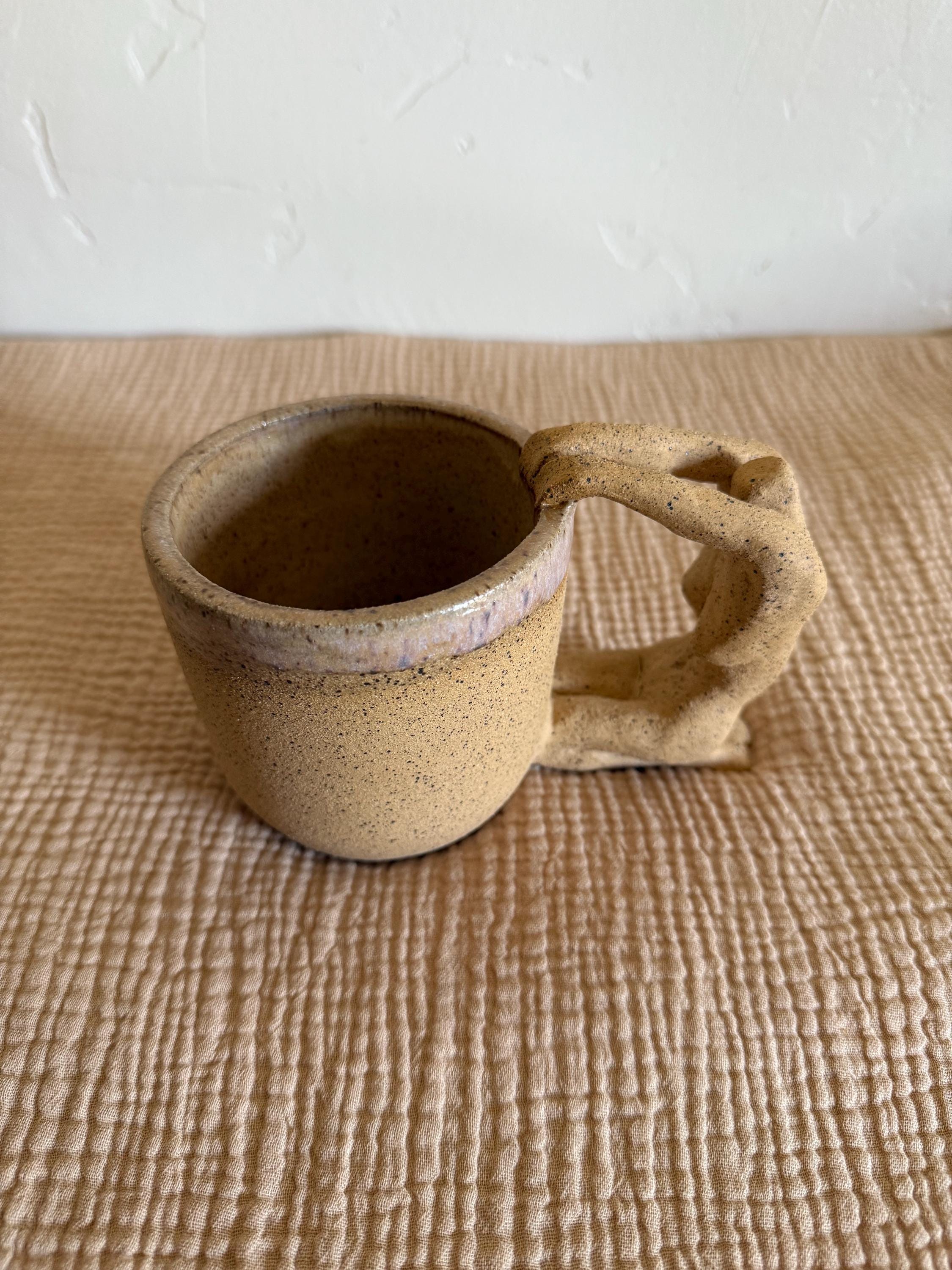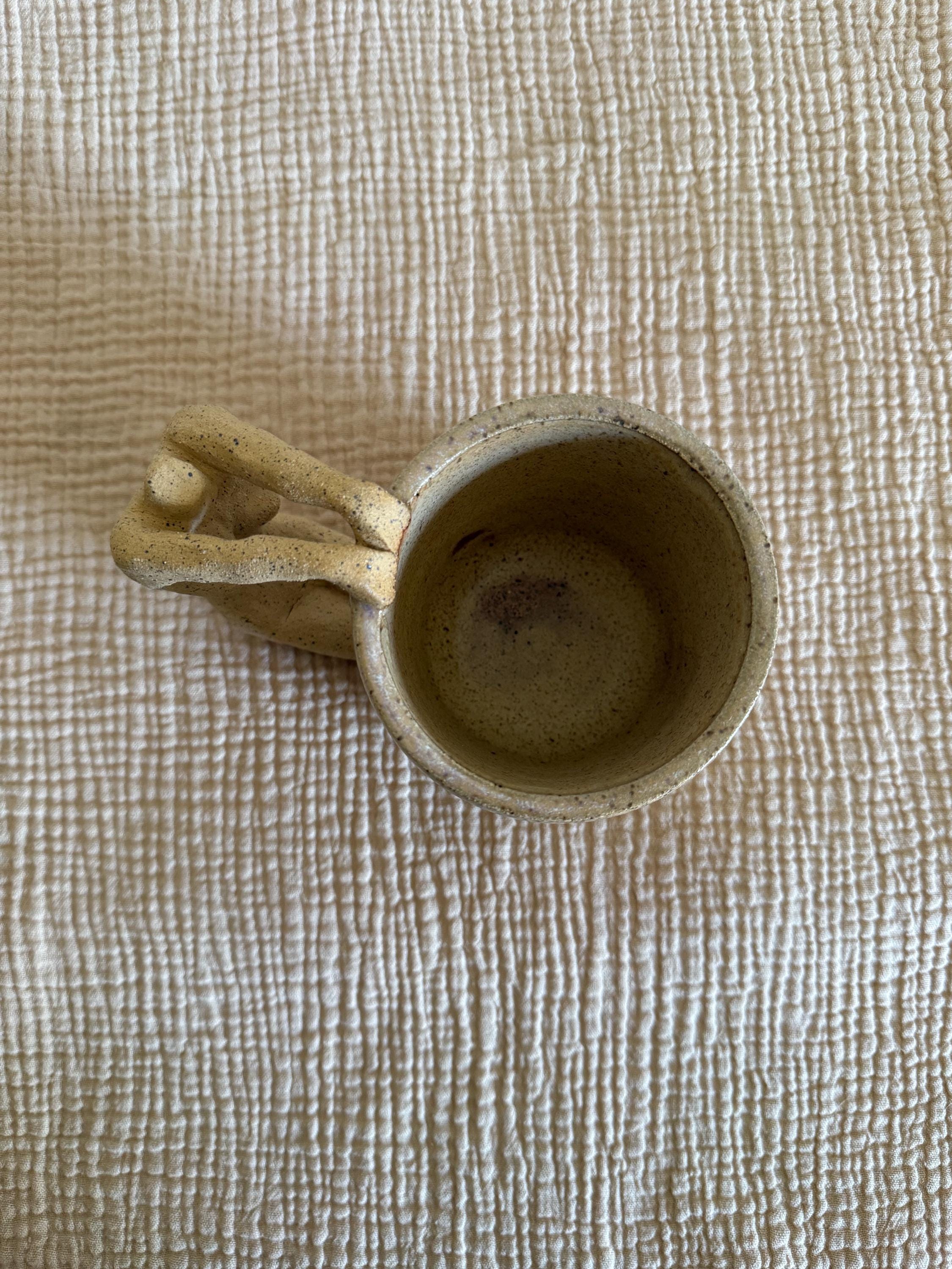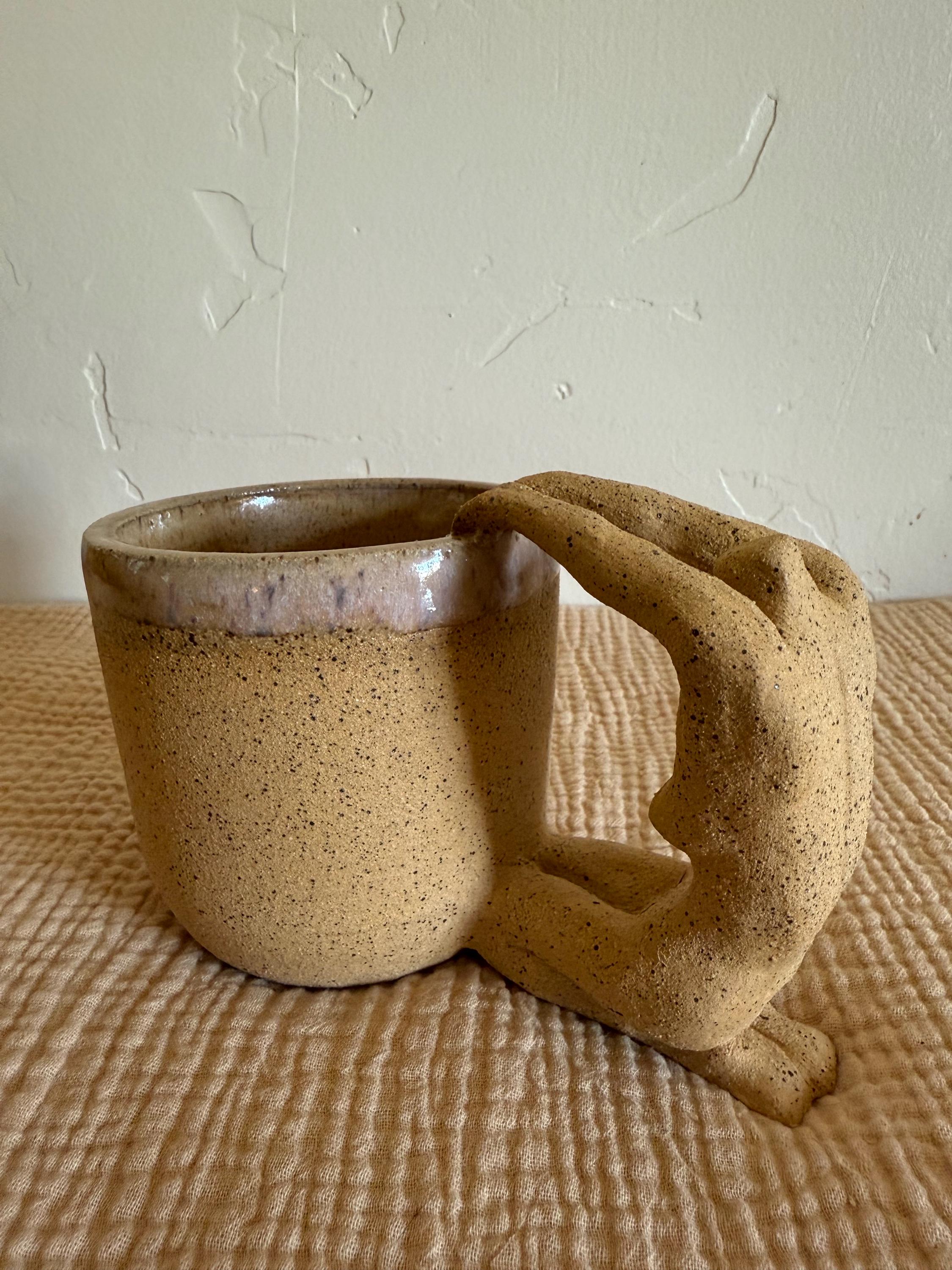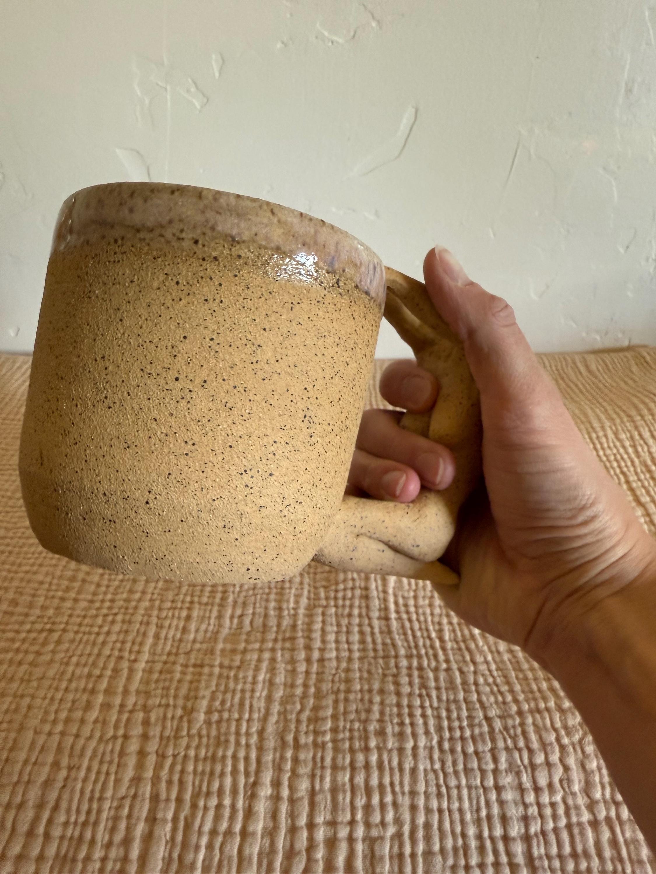 This hand thrown drinking vessel features a unique, hand sculpted, feminine form handle. The exterior has been left unglazed for a natural, raw feel.